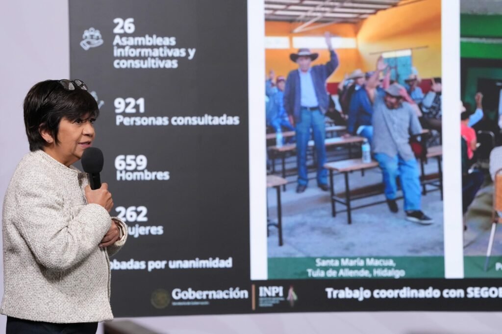 Explicó que se trabajó con 123 ejidos y comunidades: 14 para el tren AIFA-Pachuca, 57 para el México-Querétaro, 29 del Querétaro-Irapuato y 23 de Saltillo-Nuevo Laredo.