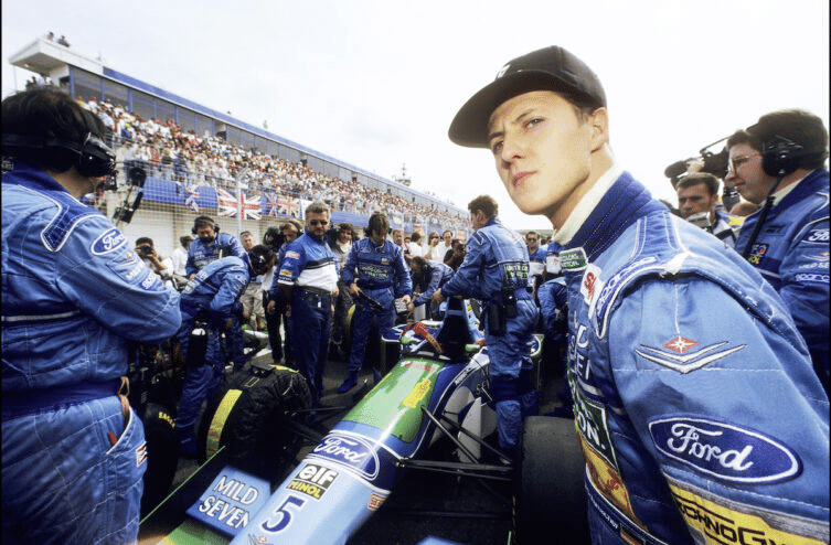 El “Kaiser” inicio en la máxima categoría del automovilismo a los 22 años, como piloto de la escudería Jordan en el Gran Premio de Bélgica de 1991 donde su impresionante desempeño en la clasificación de ese debut provocó su inmediato fichaje por el equipo Benetton esa misma temporada, equipo con el cual ganaría sus dos primeros títulos mundiales en 1994 y 1995.