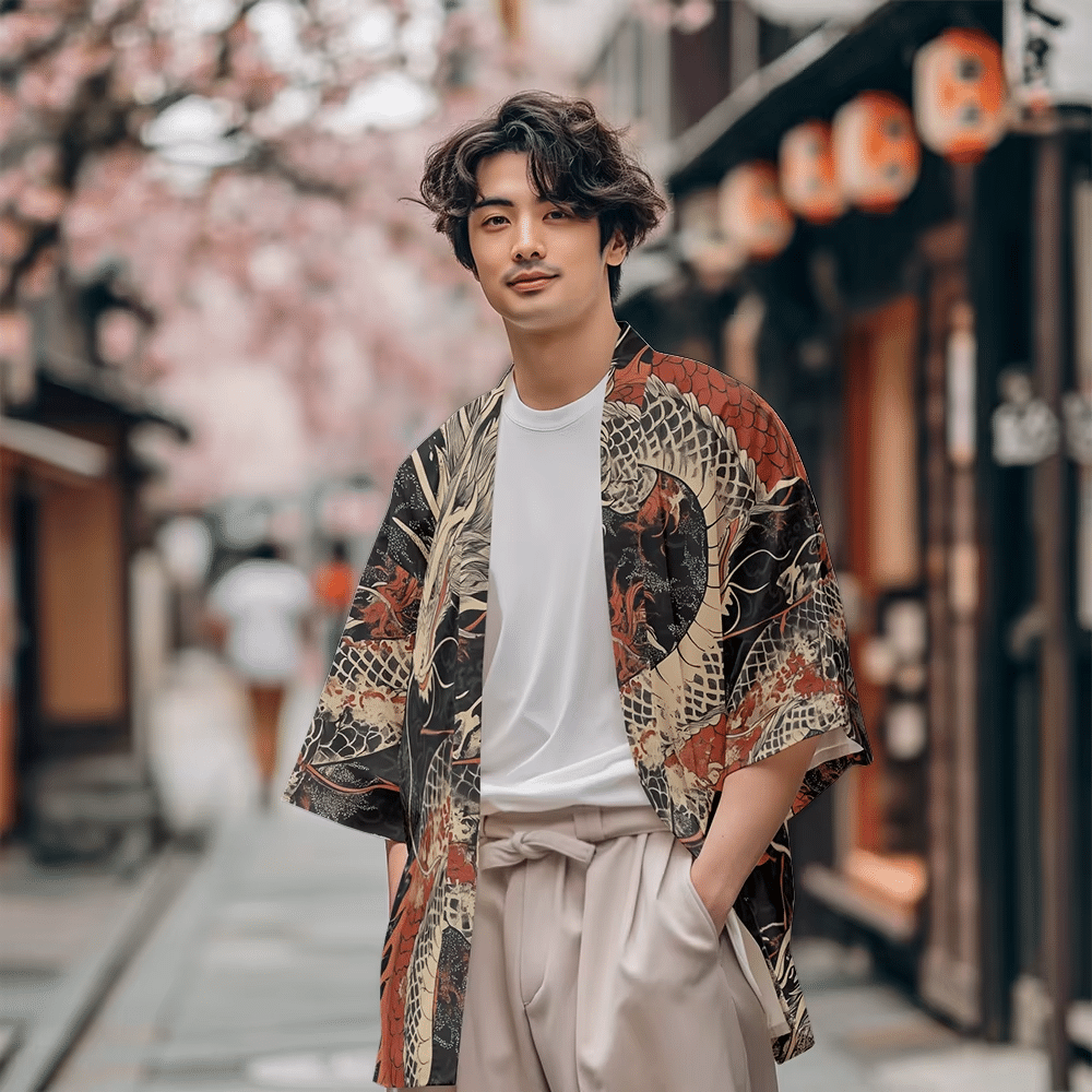 • En Japón: convive el uso tradicional (ceremonias, actuaciones) con el streetwear: el haori se luce abierto sobre camisetas, o cerrado con un cinturón moderno; también hay versiones unisex y reinterpretaciones de diseñadores que lo convierten en cardigan/abrigo ligero.