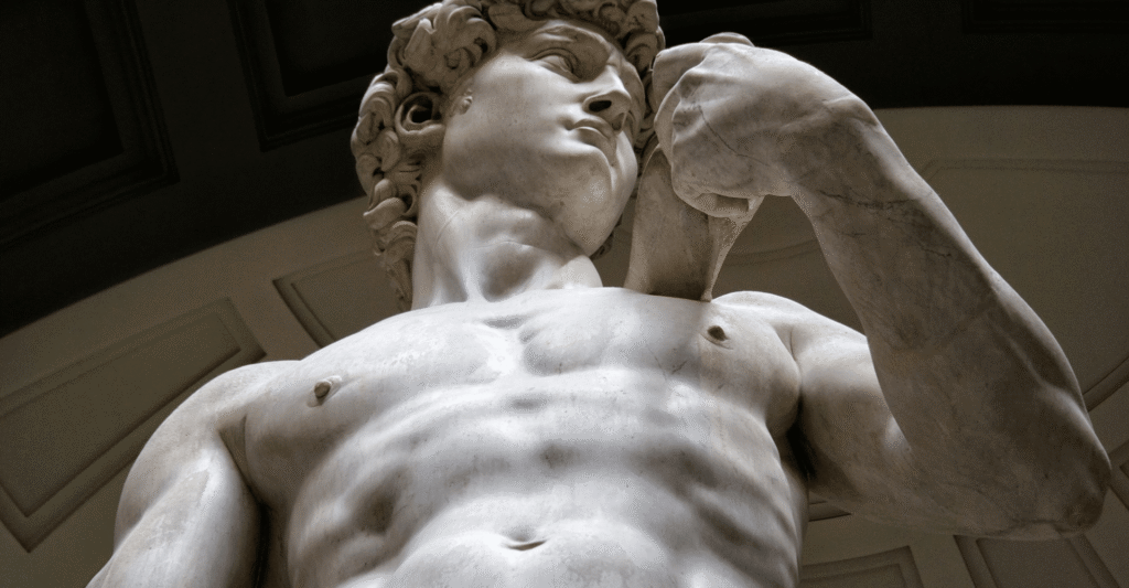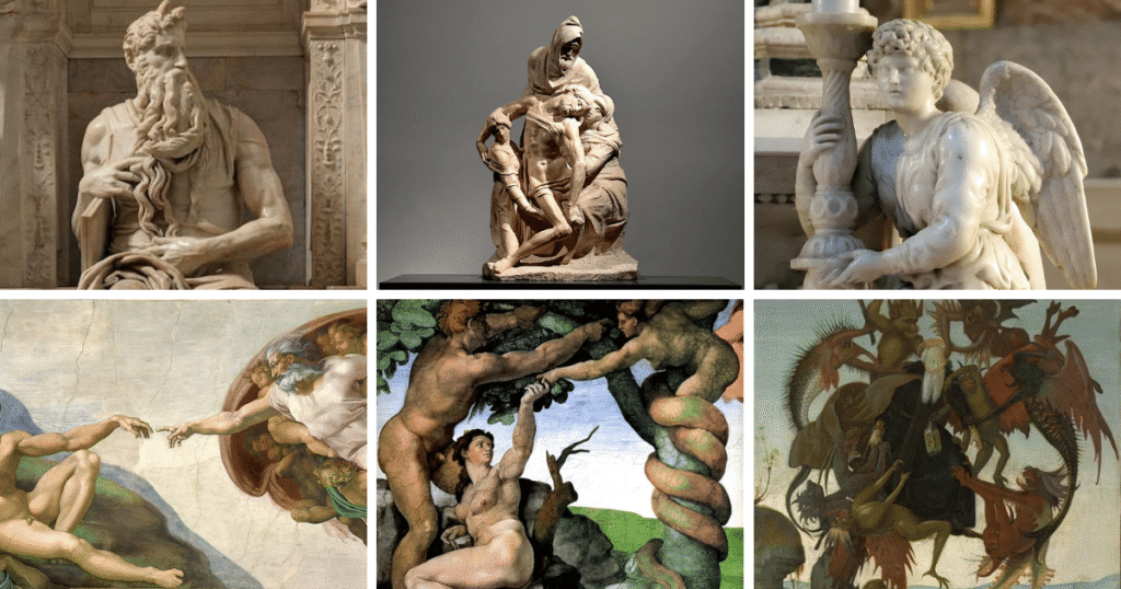 Aunque dominó múltiples disciplinas, Miguel Ángel siempre se consideró ante todo escultor. Obras como el David y La Piedad revelan su dominio absoluto del cuerpo humano, con un realismo anatómico nunca antes visto y una carga emocional que transmite fuerza, dolor y espiritualidad.