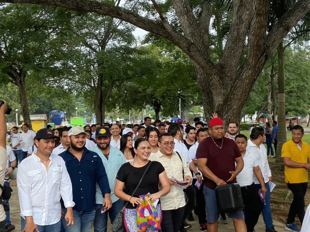 Desde la Diana Cazadora comenzaron una caminada donde acompañado de música realizaban diversas actividades hasta llegar al parque la Choca, en donde cerca de 300 jóvenes que se habían dado cita refrendaron su apoyo a la cándida presidencial Clauda Sheimbaum, así como invitaron a otros jóvenes que se sumaran a este proyecto que continuará con la transformación de México.