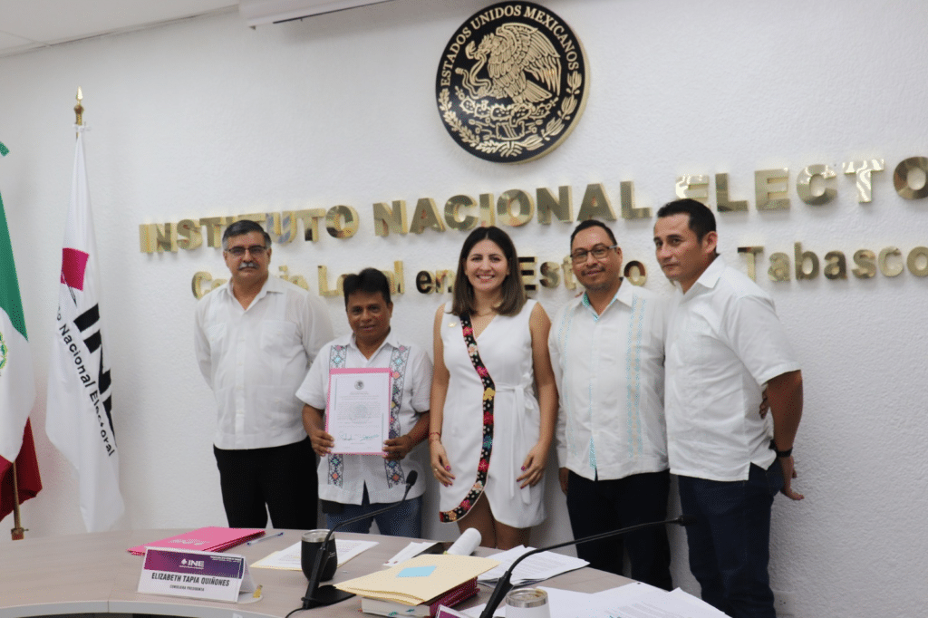 El consejo local del Instituto Nacional Electoral (INE) en Tabasco, entregó la constancia de mayoría, como senadora electa a la fallecida candidata de Morena, Rosalinda López Hernández, por lo que en su ausencia la recibió el representante morenista, Roberto Romero del Valle.