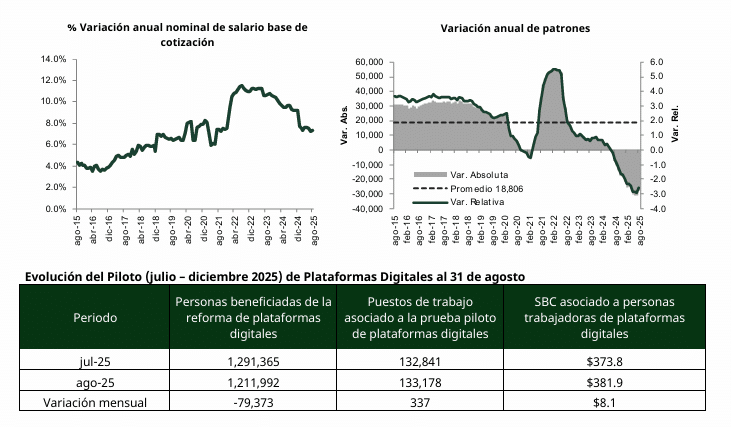 En el mes de julio se observó que del 1,046,137 (un millón cuarenta y seis mil ciento treinta y siete) personas únicas, beneficiarias de la reforma de plataformas digitales, un total de 319,951 (trescientos diecinueve mil novecientos cincuenta y uno) tienen otro puesto de trabajo: 278,382 (doscientos setenta y ocho mil trescientos ochenta y dos) por otro empleo formal afiliado al IMSS; 36,612 (treinta y seis mil seiscientos doce) personas asegurados como trabajadores de municipios o estados; y 4,957 (cuatro mil novecientos cincuenta y siete) en otras modalidades de aseguramiento.