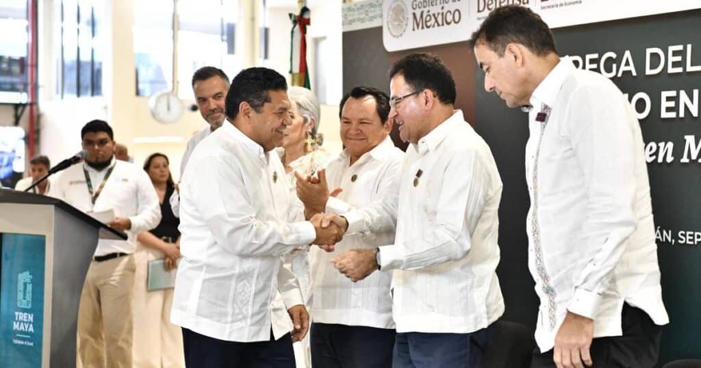 De igual manera, el gobernador yucateco puntualizó que ‘Hecho en México’ grabado en los vagones del Tren Maya significa que México confía en el talento de su gente, además que esta certificación no solo lo reconoce como un gran proyecto ferroviario, sino que es un símbolo de identidad nacional en cada tramo que recorre de Chiapas, Quintana Roo, Tabasco, Campeche y Yucatán.