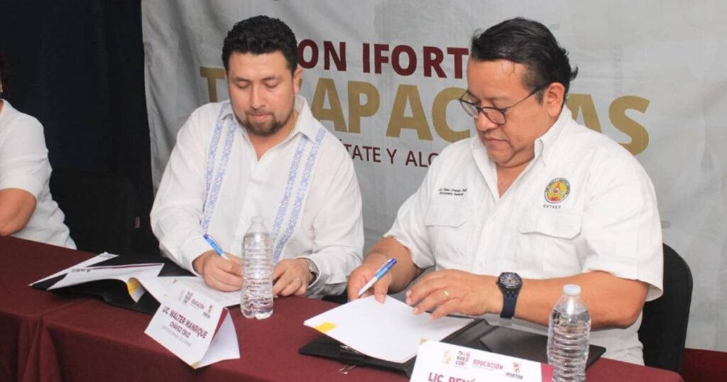 El acuerdo fue firmado por el director general del IFORTAB, Walter Manrique Chávez, y por el secretario general del SUTSET, René Ovando Olán, quien estuvo acompañado por la Presidenta del Voluntariado, Carmen Morales Villegas, en un acto que contó con la presencia de autoridades de ambas instituciones, delegados y parte del Comité Ejecutivo Estatal.