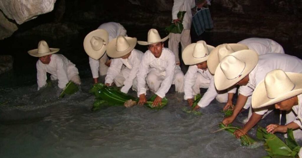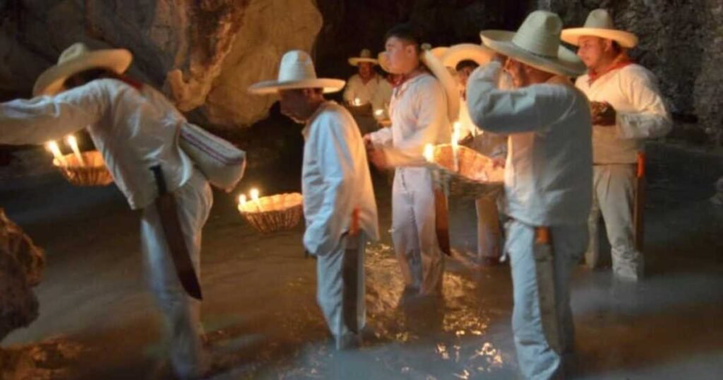 El evento inicia con música, danzas y ofrendas que combinan elementos prehispánicos y religiosos, reflejando la profunda conexión espiritual del pueblo con la naturaleza. Los participantes ingresan a la cueva iluminados por antorchas, mientras las familias esperan afuera entre cantos y rezos, creando un ambiente místico que envuelve a todo el paraje.
