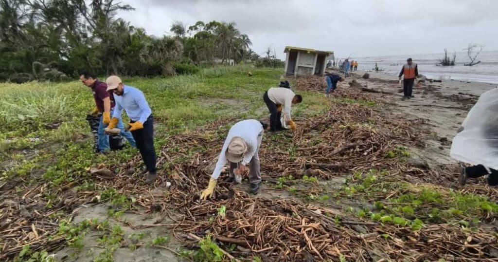 Realizan limpieza de la zona costera en Tabasco, para el saneamiento de playas