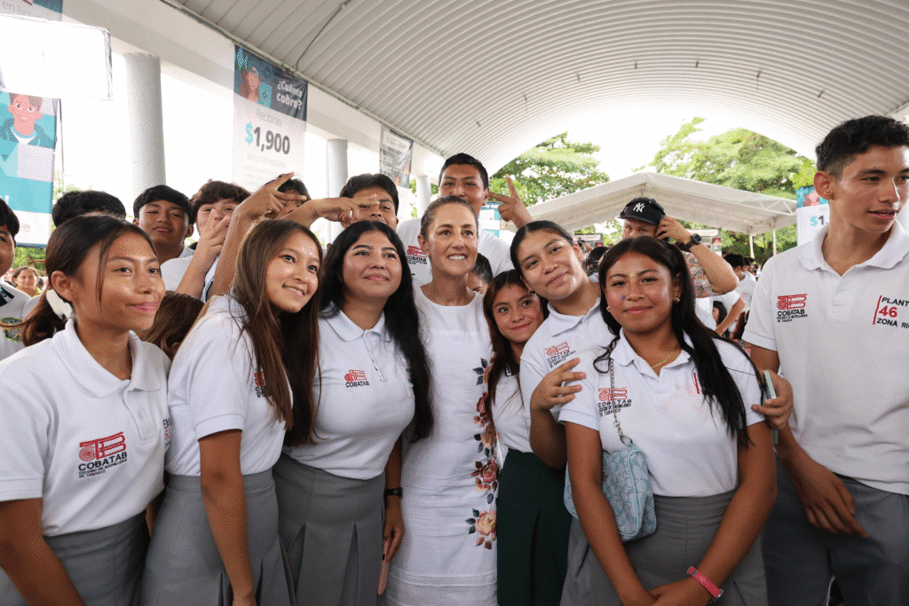 El anuncio se dio en el marco de la entrega de tarjetas del Banco del Bienestar a estudiantes beneficiarios de la beca Benito Juárez García en el Colegio de Bachilleres No. 46. “No se hubiera hecho viral esa canción si no fuera una necesidad en nuestro país”, expresó la mandataria, haciendo referencia a la importancia de la educación superior al alcance de todos y confirmando la edificación de más preparatorias y universidades.
