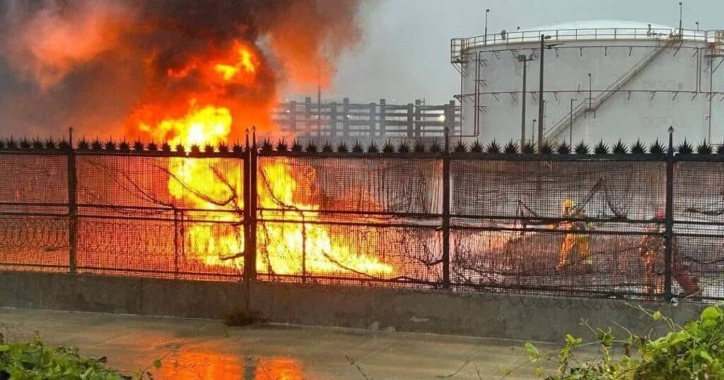 Los datos han revelado que el suceso, originado por el desbordamiento de aguas aceitosas debido a las intensas precipitaciones y su posterior ignición fuera del muro perimetral, fue atendido de manera inmediata por los cuerpos de emergencia.