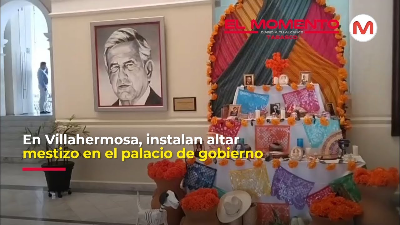 En el lobby del palacio de gobierno, fue instalado un altar mestizo que representa la tradición de honrar aquellas personas que ya han fallecido, a través de ofrendas de productos del campo y de dulces típicos, dónde la gastronomía tabasqueña se hace presente.