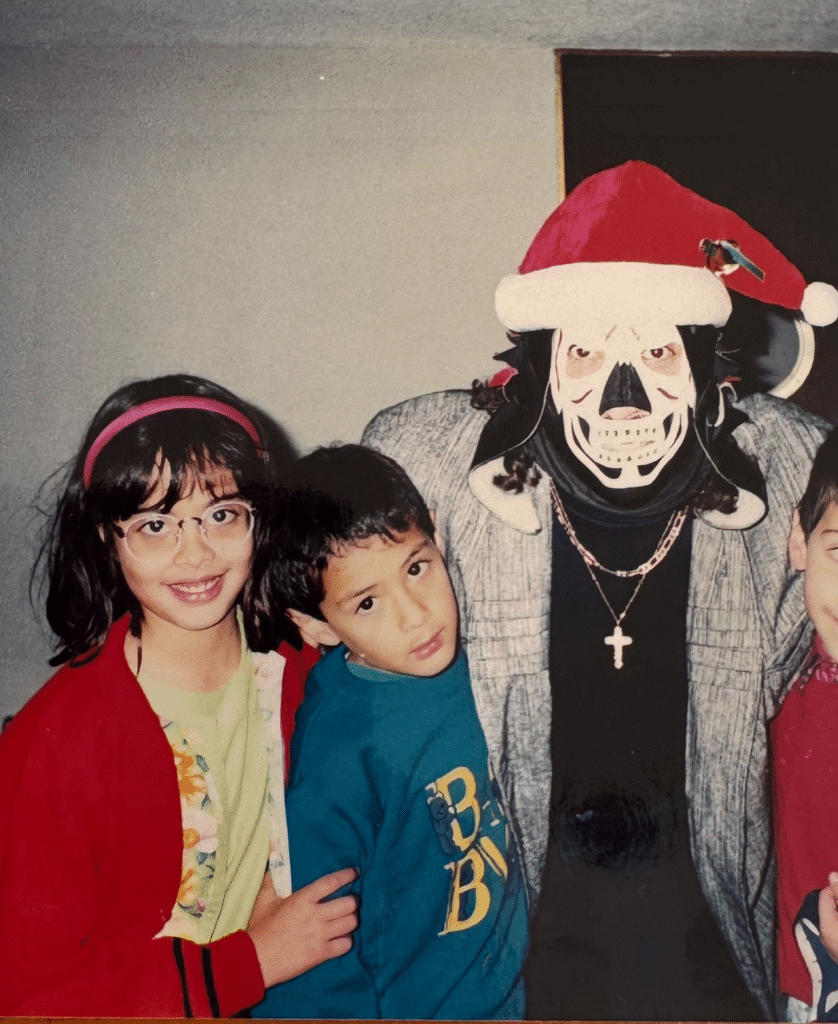 Encontré algunas fotos donde personajes como Octagón, La Parka, Los Cocos, Konnan, por nombrar algunos, gozaban de la época navideña y, además de grabar promocionales, iban a festejar sus posadas en casa.