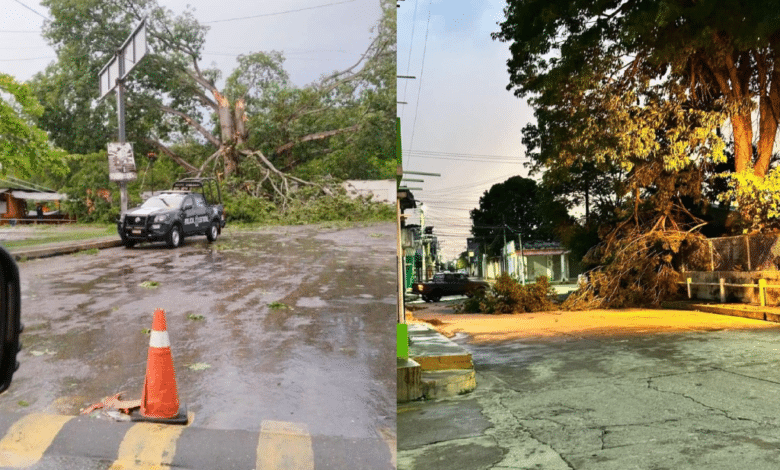 Asimismo, se registraron caídas de ramas en la prolongación de la calle 27 de febrero y en el circuito interior Carlos Pellicer Cámara en el municipio de Centro, lo que obligó a las autoridades locales a realizar labores de limpieza y despeje de las vías para evitar posibles percances debido a la obstrucción.