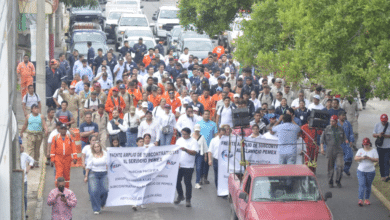 Caos vial se ha generado esta mañana en la avenida Adolfo Ruiz Cortínes, por la marcha de subcontratistas petroleros, quienes…